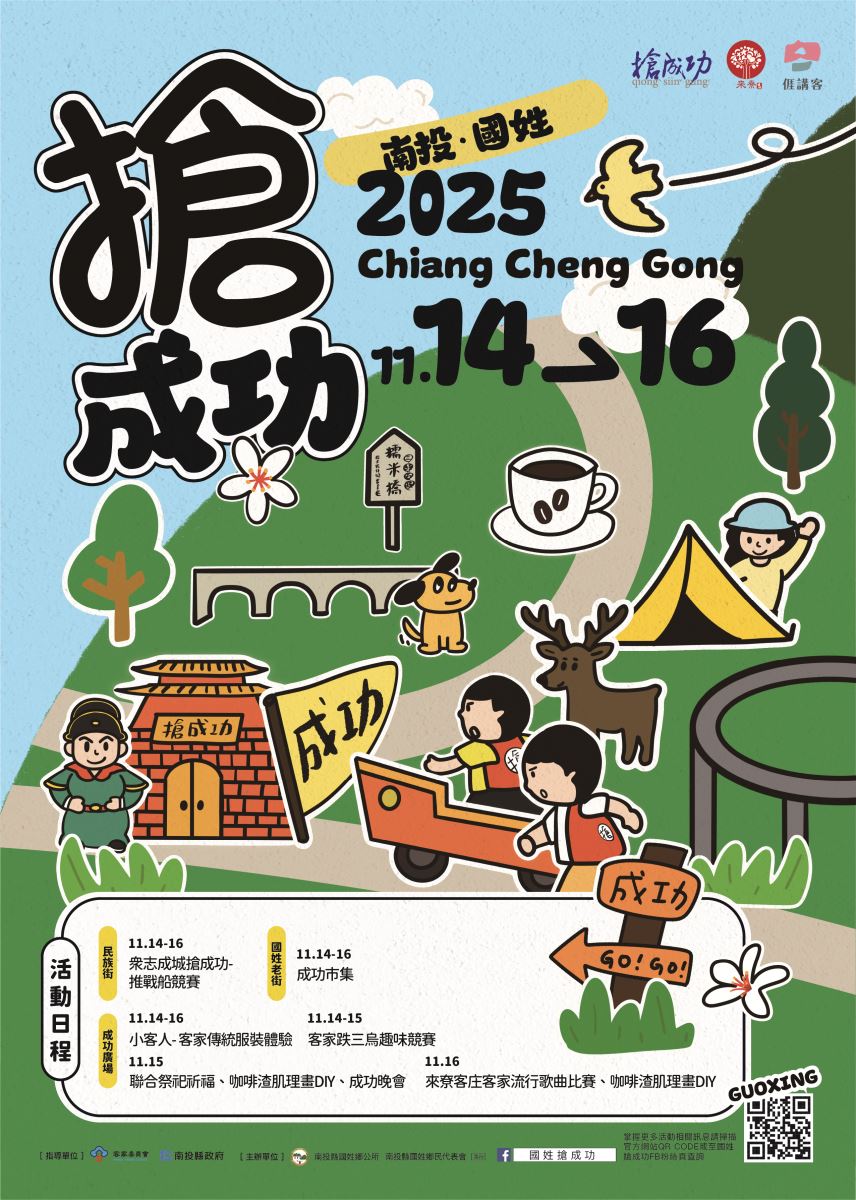 南投縣國姓鄉公所「2025客庄大節-南投.國姓搶成功」主旨:本鄉辦理「2025客庄大節-南投.國姓搶成功」系列活動,自114年9月22日(一)至114年10月17日(五)受理推戰船競賽及全國客家流行歌曲比賽網路報名,敬請協助宣傳及鼓勵踴躍報名,請查照。