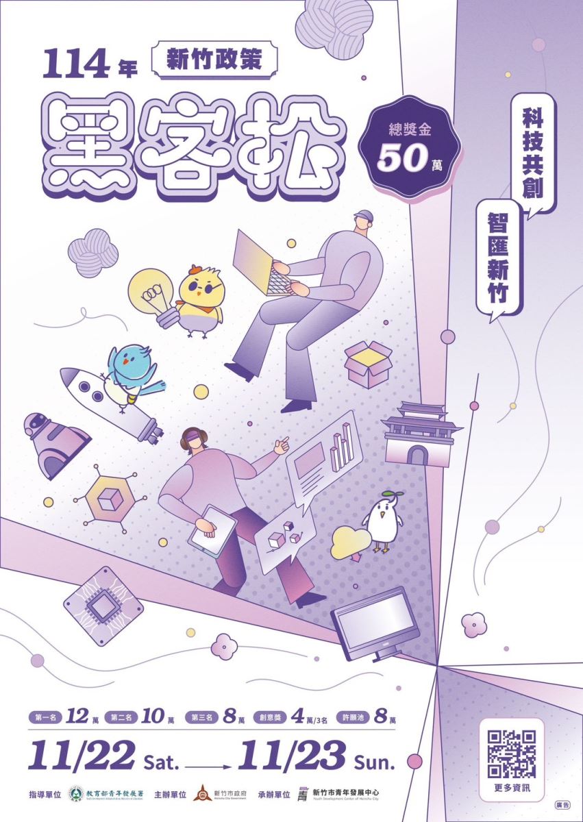 新竹市政府114年度新竹政策黑客松競賽活動一、活動目的:為提昇青年參與公共政策的意願、啟發對公共事務的興趣,以政府出題、青年解題方式,共創地方政策及城市解方。